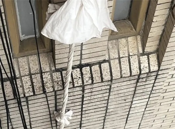 床单打结,做成的简易绳索出逃